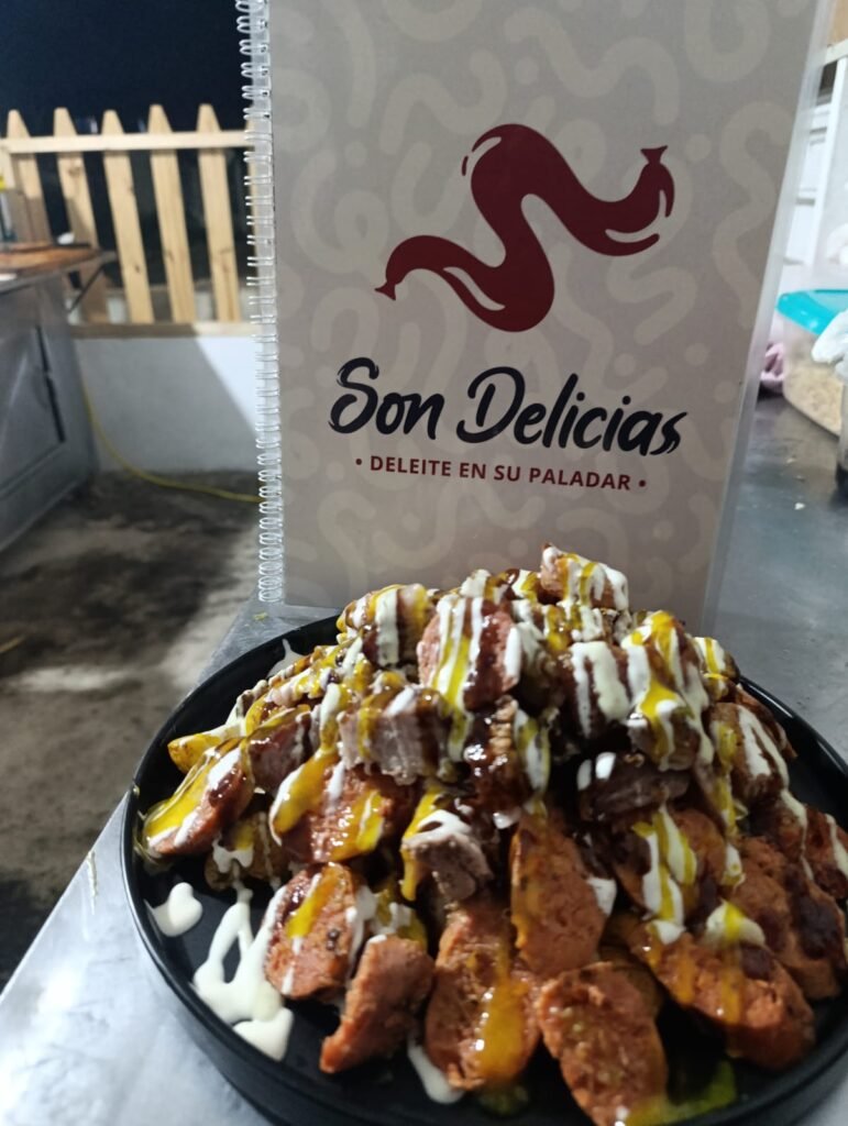 300 g Chorizo,400 g de papas a la francesa, lechuga, queso costeño, papas chongo, gratinado y salsas de la casa